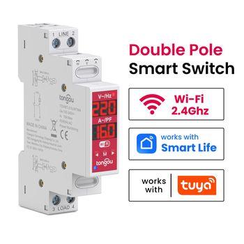 Двухполюсный умный автоматический выключатель TONGOU TOVMT, L-L/N, 16A, 2 полюса, Tuya, умная жизнь, домашнее применение, двухполюсный переключатель